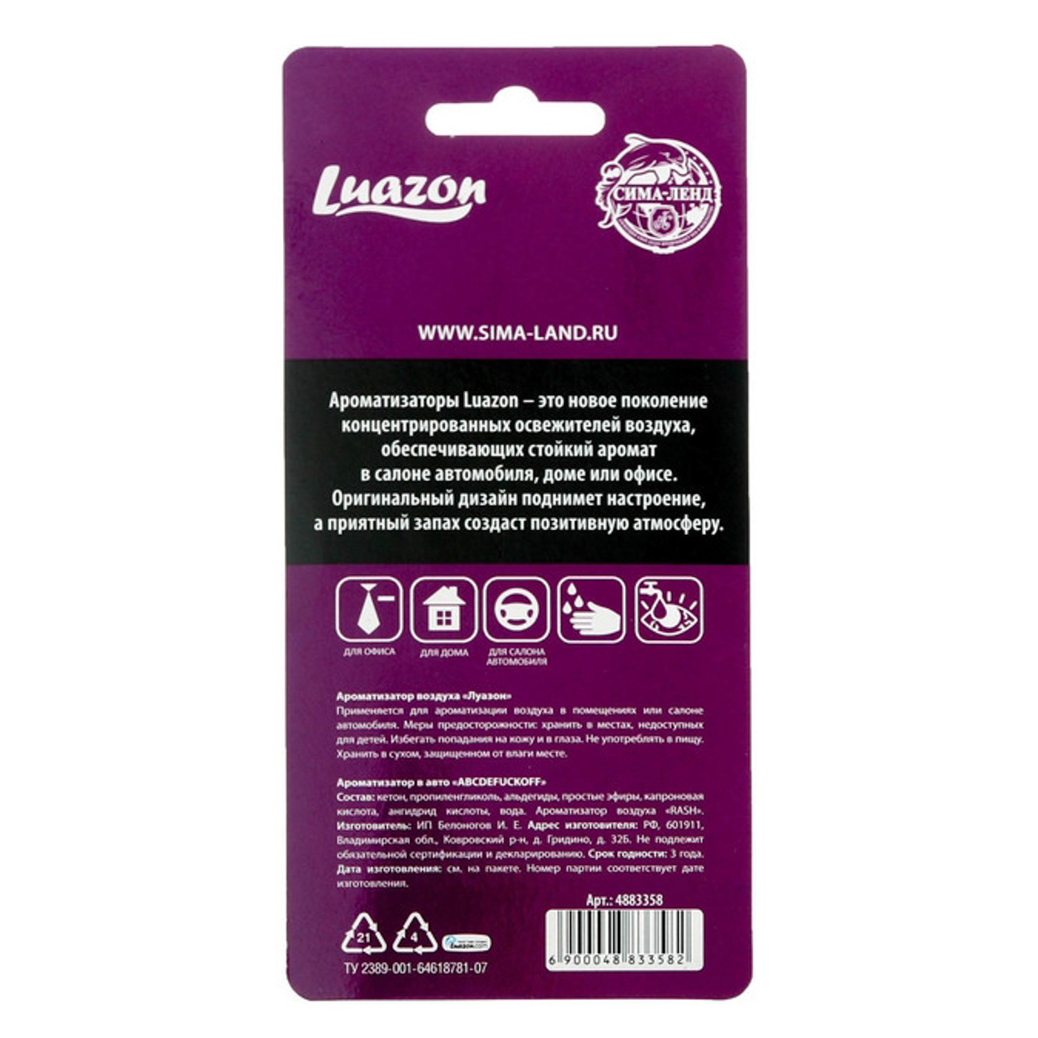 Ароматизатор бумажный "ABCDEFUCKOFF" 4883358