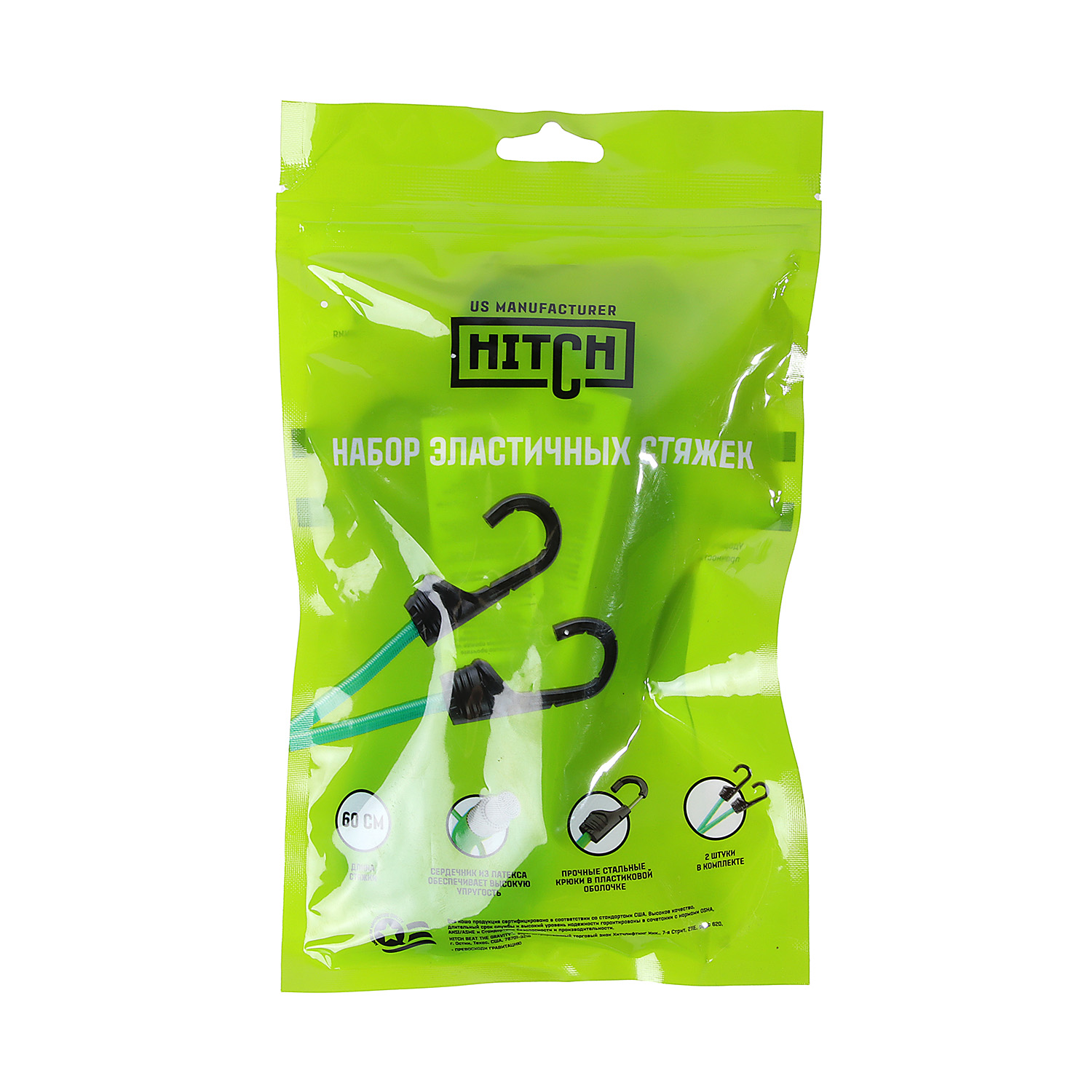 Стяжка эластичная  60см, d8мм, 2шт, резина,латекс, крюк.пласт, сердц.сталь арт.SZ087654 Hitch Regular *1/50