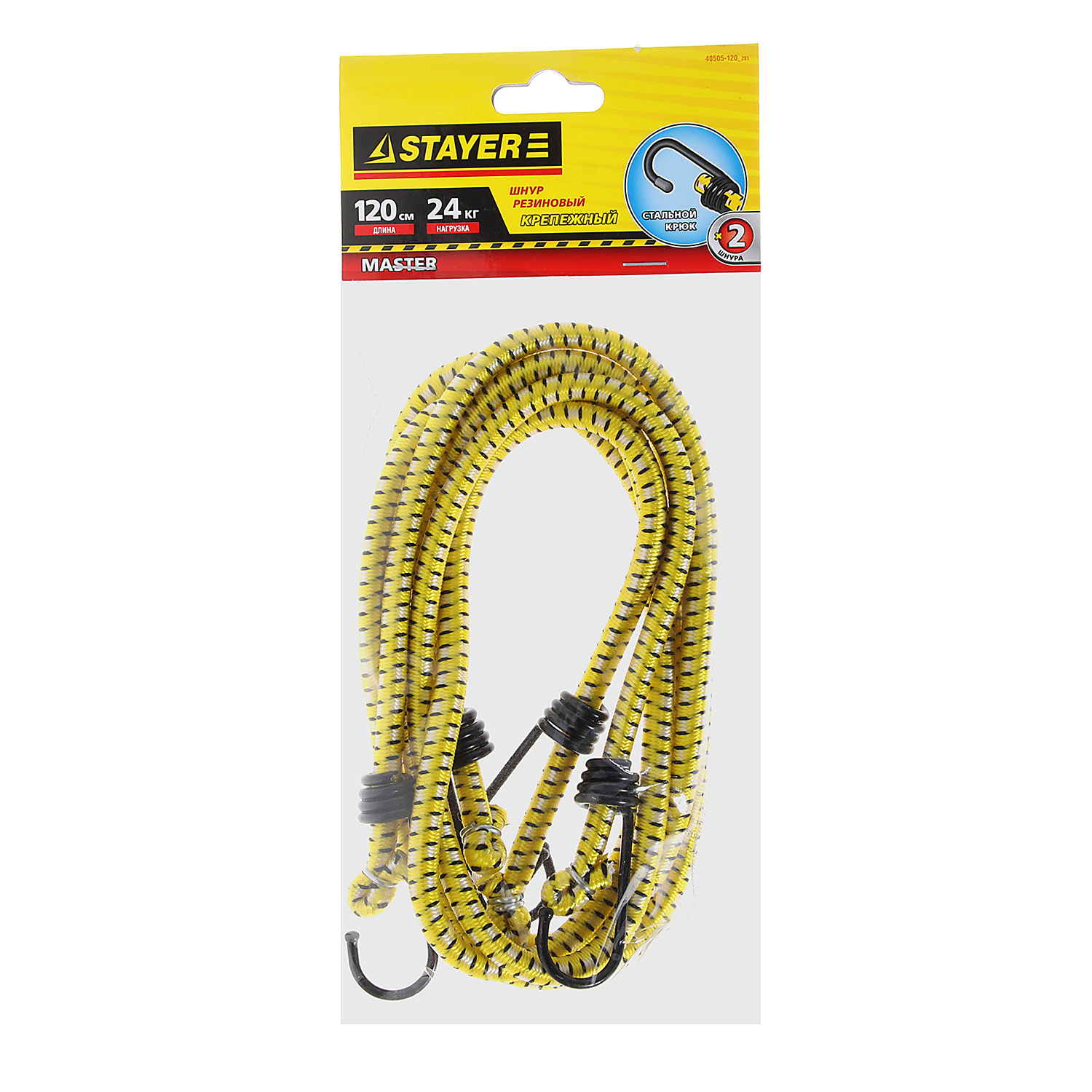 Шнур крепежный резиновый 120 см,d7мм, 2 шт, крюки стальные Мастер (арт.40505-120_z01) Stayer *1/6/48
