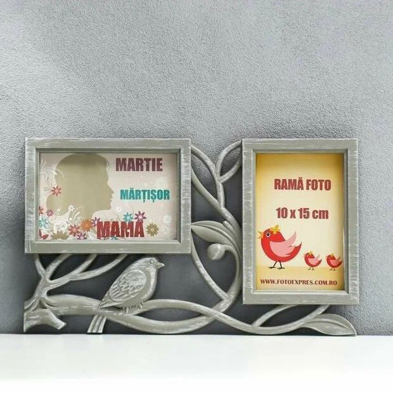 Фоторамка пластик на 2 фото 10х15 см "Птица счастья" серая 21х35 см 2751000