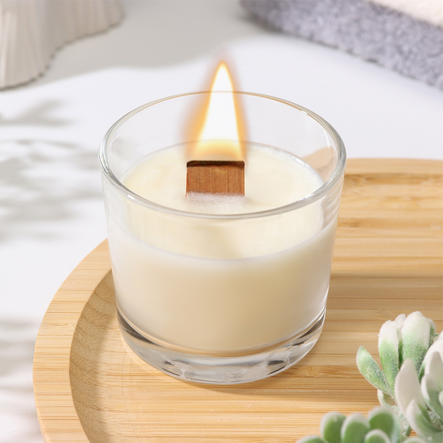 Ароматическая свеча в стакане «Черная смородина», из соевого воска с деревянным фитилём, 65 г