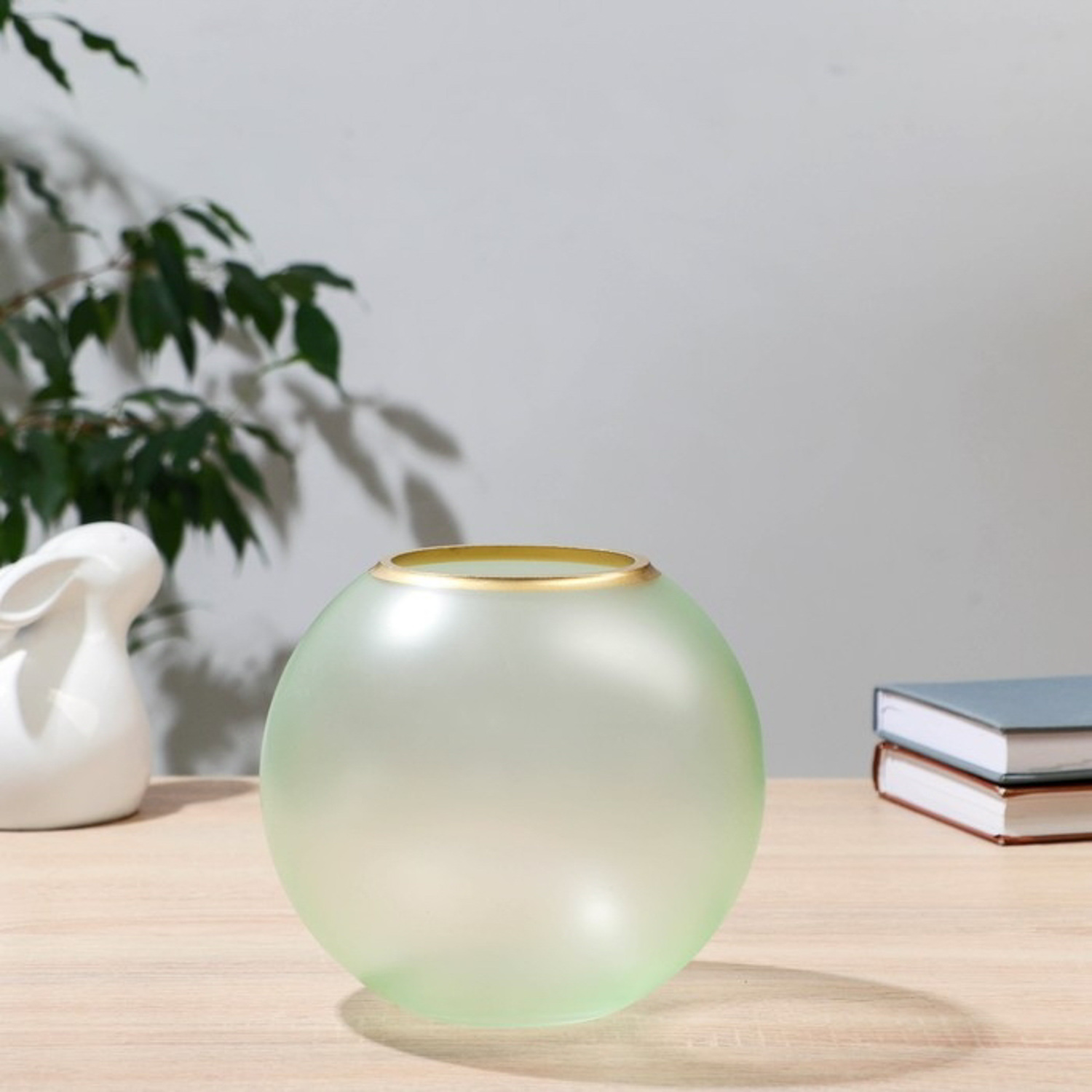 Ваза "Зелёная" с золотой полоской d=9см h=15.5см 9456517