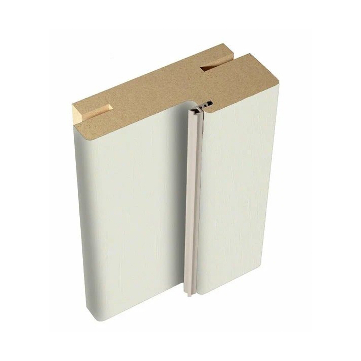 Дверная коробка — часть дверного блока, представляет собой рамочную конструкцию, закрепляемую на стенках дверного проема. Отличие телескопической коробки от стандартной состоит в том, что она имеет специальные пазы, не требующие дополнительных креплений наличника. Чтобы улучшить звукоизолирующие свойства, в дверную коробку установлен уплотнитель. Изготовлена из плит МДФ, ширина 80мм, декорирована ПВХ пленкой (размер 26*80*2050мм).