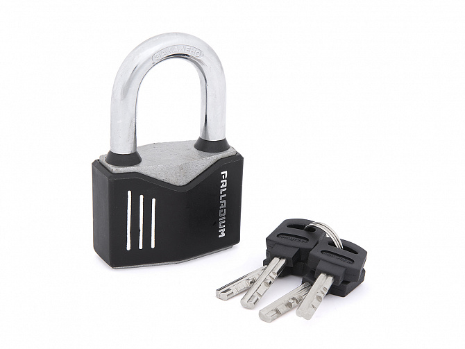Всепогодный навесной замок 40 мм с длинной дужкой. Прекрасно работает в любую погоду благодаря водонепроницаемой конструкции. Высокий проем дужки (52.7 мм) позволяет завести замок через высоко приваренные расположенные или широко расставленные петли.