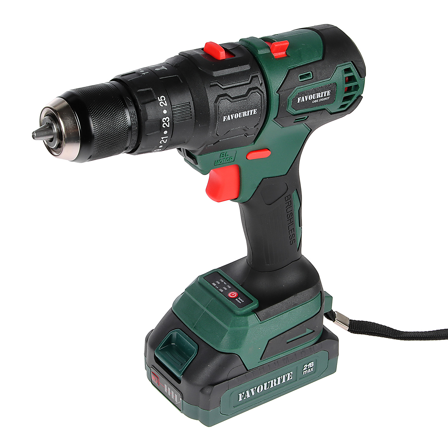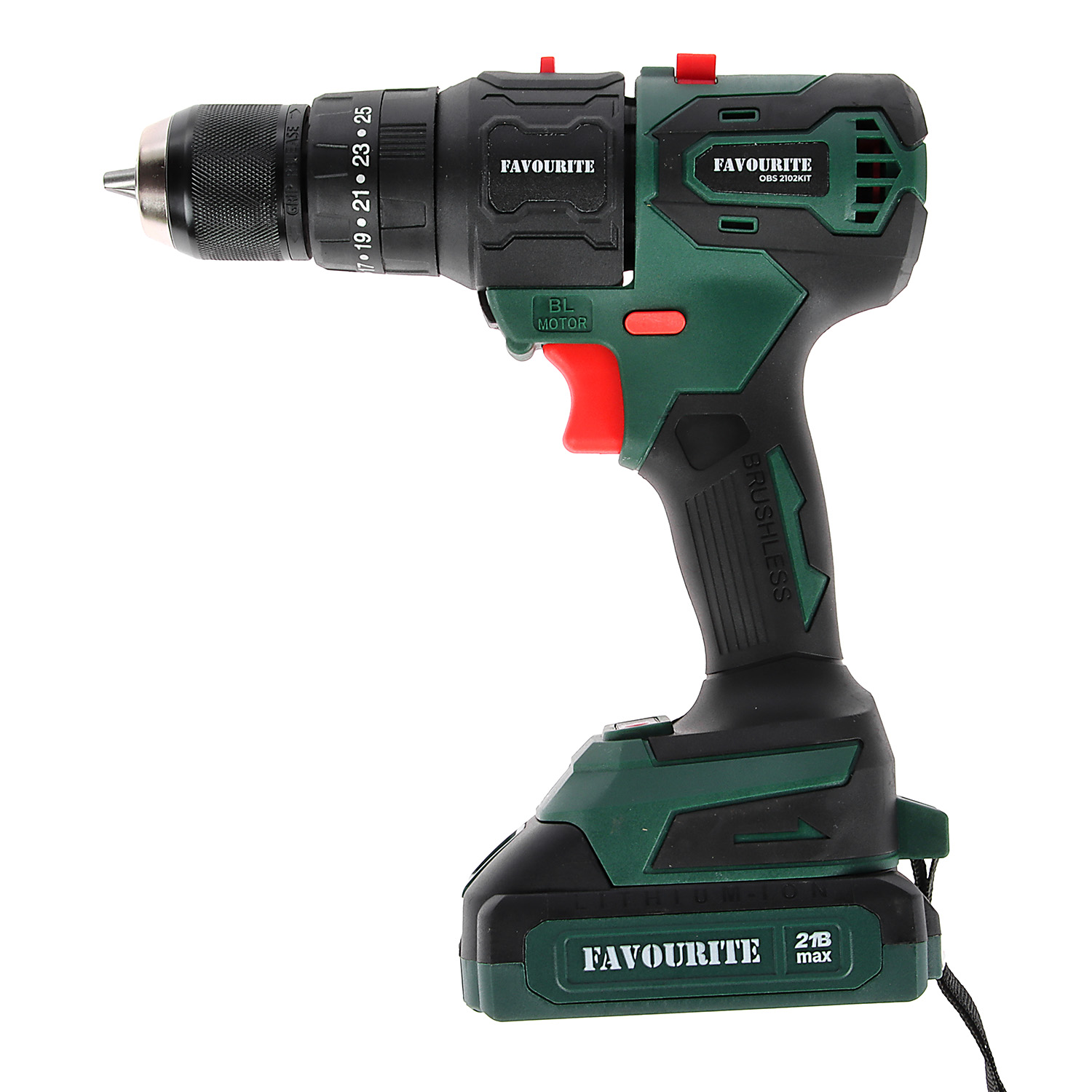 Дрель-шуруповерт 21Вт 2Ач 1АКБ LI-ION Б/Щ МУЛЬТИТУЛ 4в1 OBS 2102KIT FAVOURITE *1/5