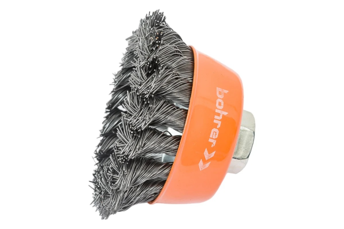 Щетка-крацовка "чаша" витая,жесткая проволока 75мм 0,5мм М14мм для УШМ арт.36200075 Bohrer *1/100