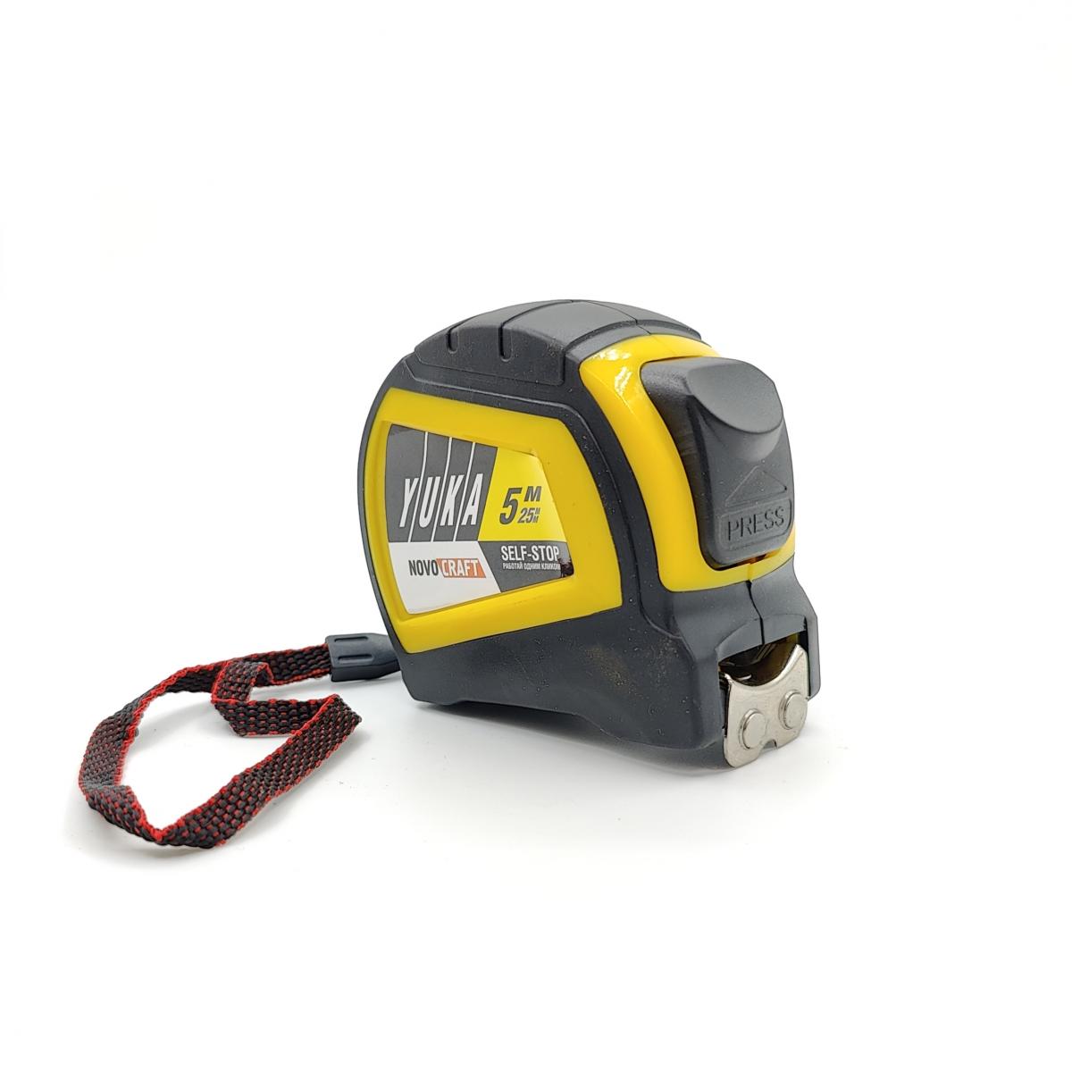 Рулетка 5м х25мм резино-пластик.корпус стальная лента автостоп.магнит артYK00525M Novocraft1/6/120