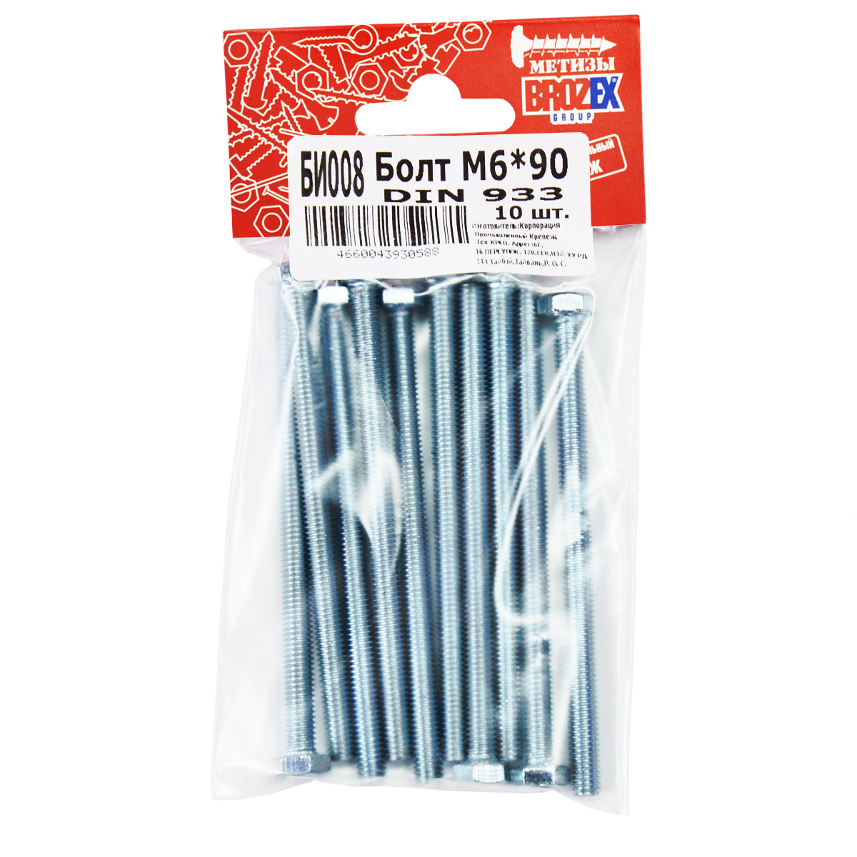 Болт DIN933 BROZEX М6*90 (10шт) *10/100