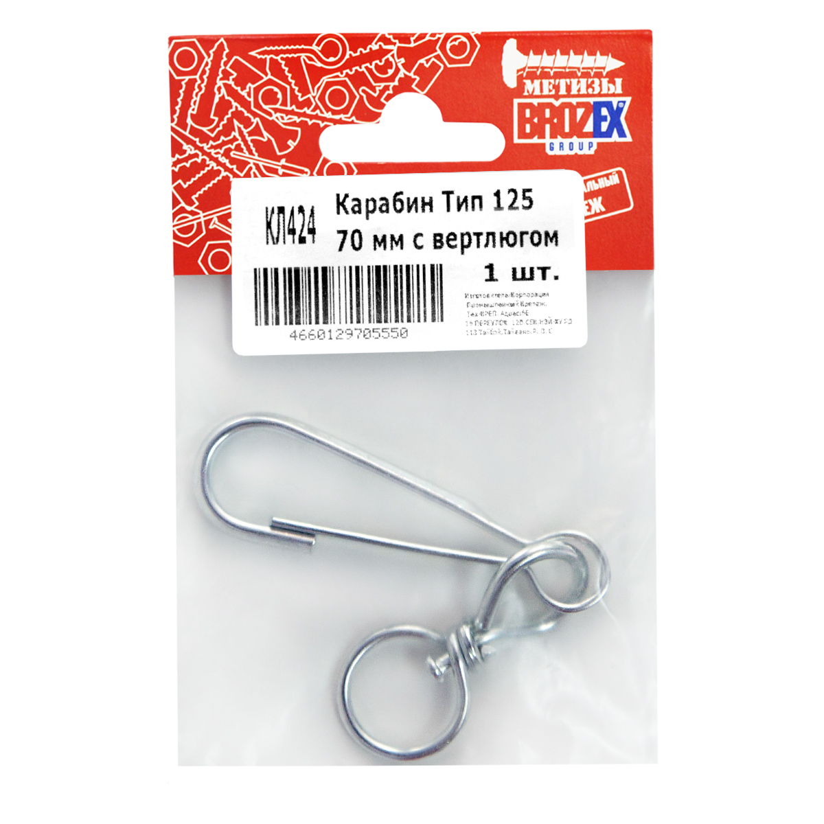 Карабин тип 125 70мм с вертлюгом (1шт) BROZEX *10