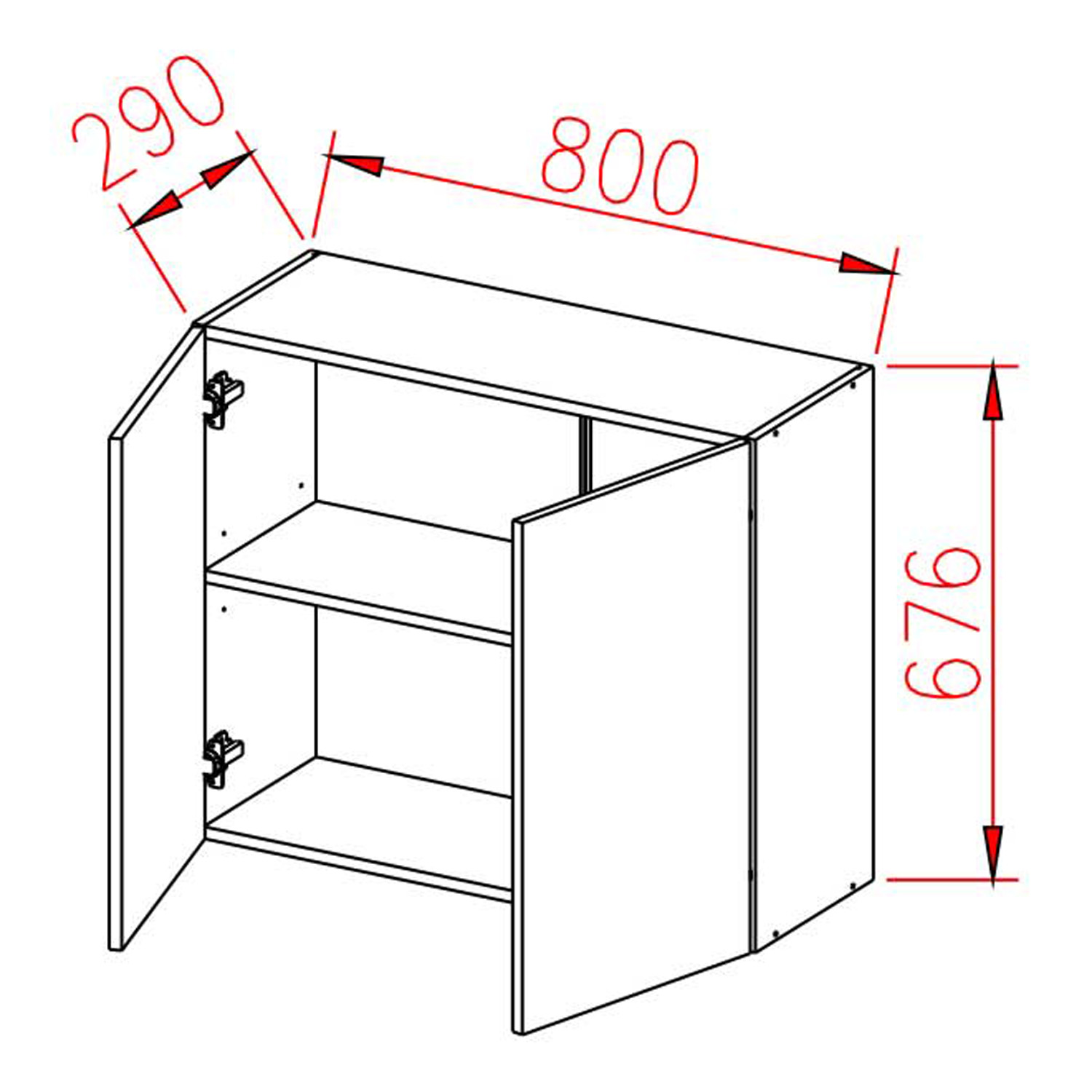 Шкаф навесной 800х676х290 мм BROZEX-WOOD Стиль, с двумя дверцами, белый / светло-бежевый