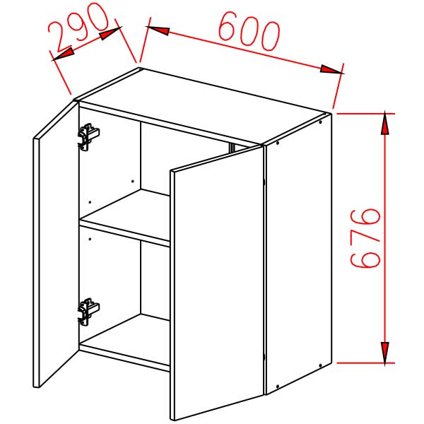Шкаф навесной 600х676х290 мм BROZEX-WOOD Серый лед, с двумя дверцами, серый / графит
