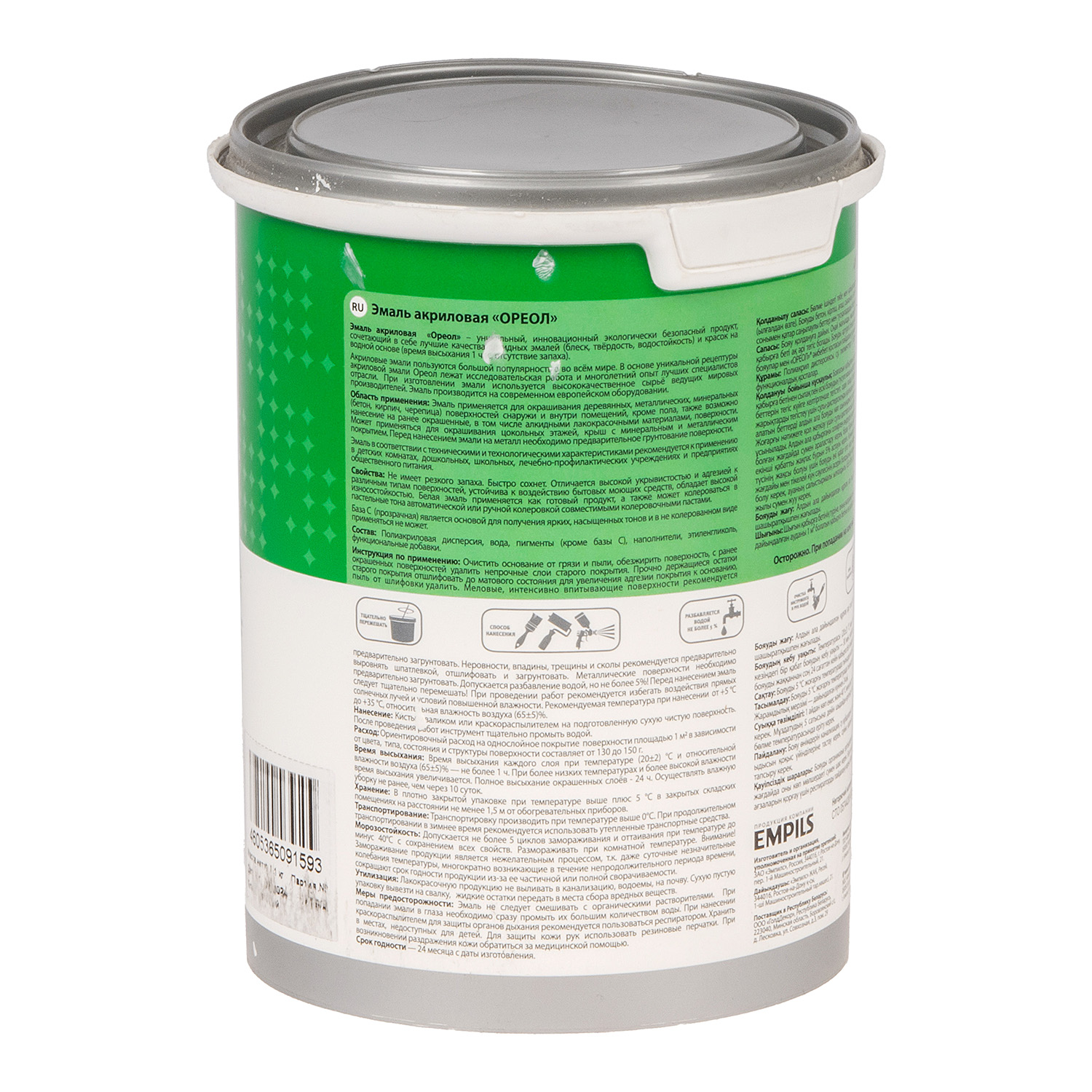 Эмаль акриловая белая матовая 1,1 кг Ореол *1/6/288