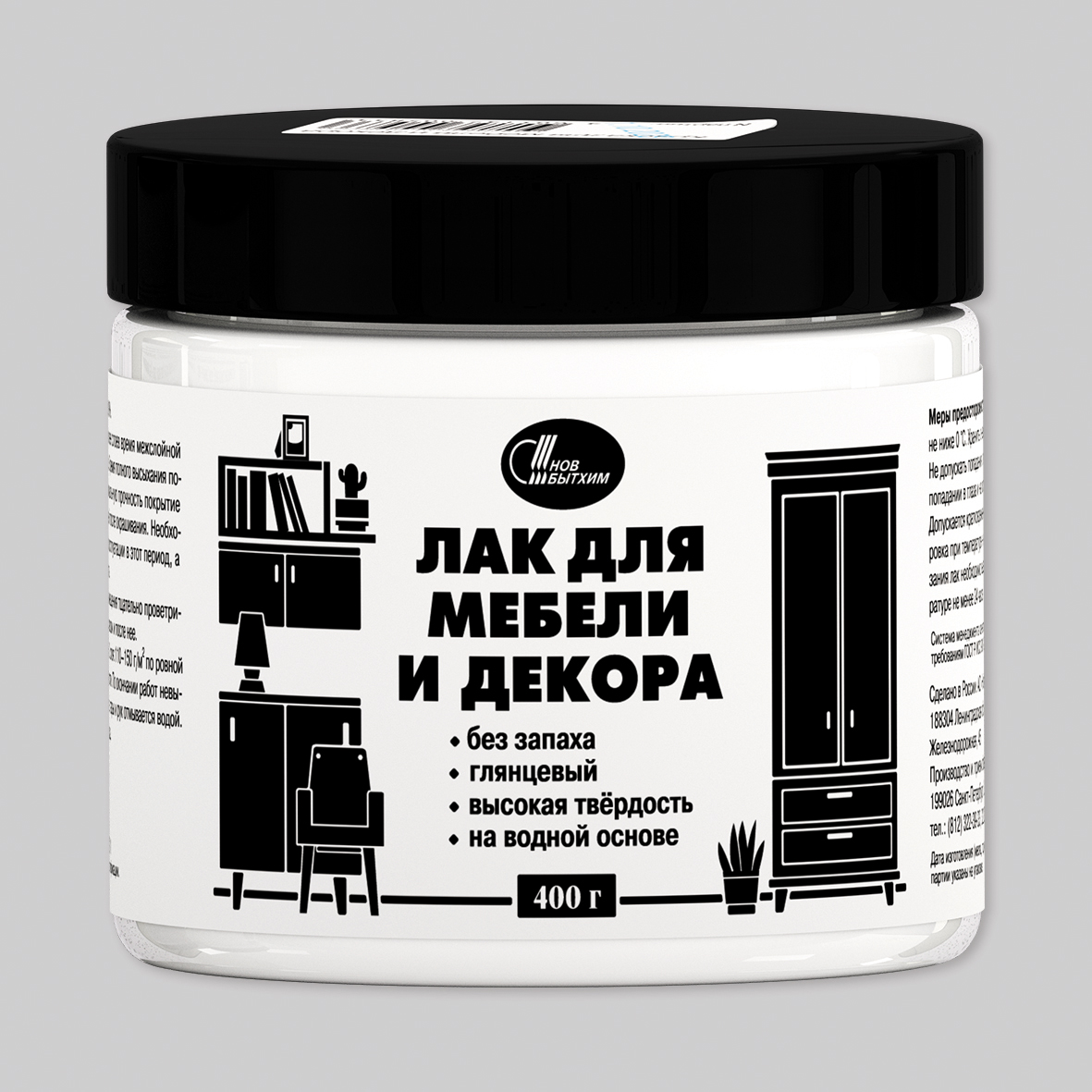 Лак акриловый для мебели и декора глянцевый 0,4 кг Новбытхим *1/6