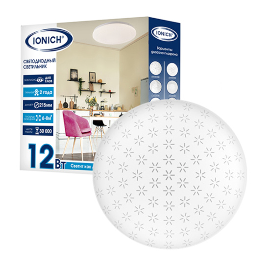 Светильник светодиодный акриловый 215мм IONICH "Орион" эффект "Звездное небо" 12Вт 6000-6500К 850Лм S=6-8м2 1713*1/40