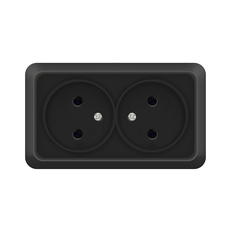 Розетка "Олимп" ОП 2-мест. черный б/з 16А IP20 UNIVersal 2215 *10/200