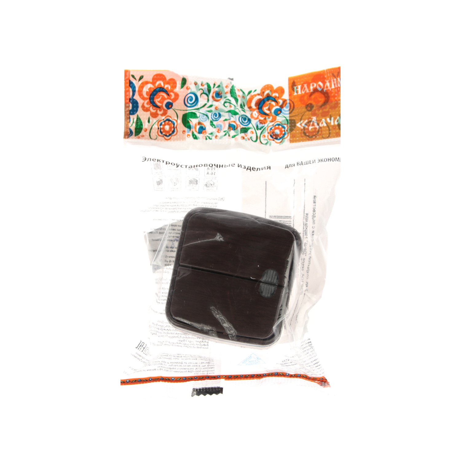 Выключатель Дача ОП 2кл. венге с подсветкой 10А Народная SQ1824-0044