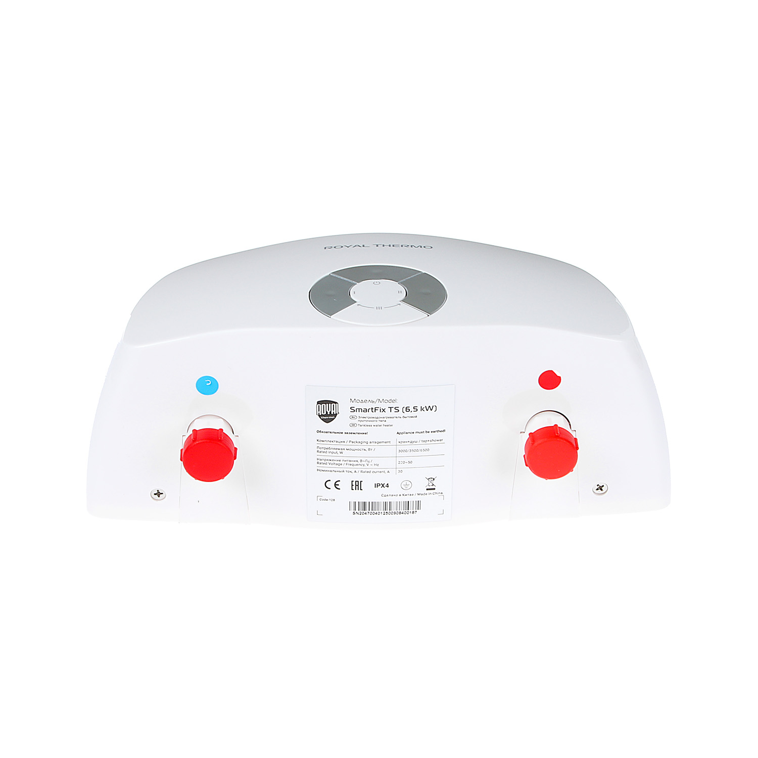 Водонагреватель, переходник и кран + душ, дюбель — 3 шт., шуруп 4.2х30 — 2 шт., пластиковая заглушк
