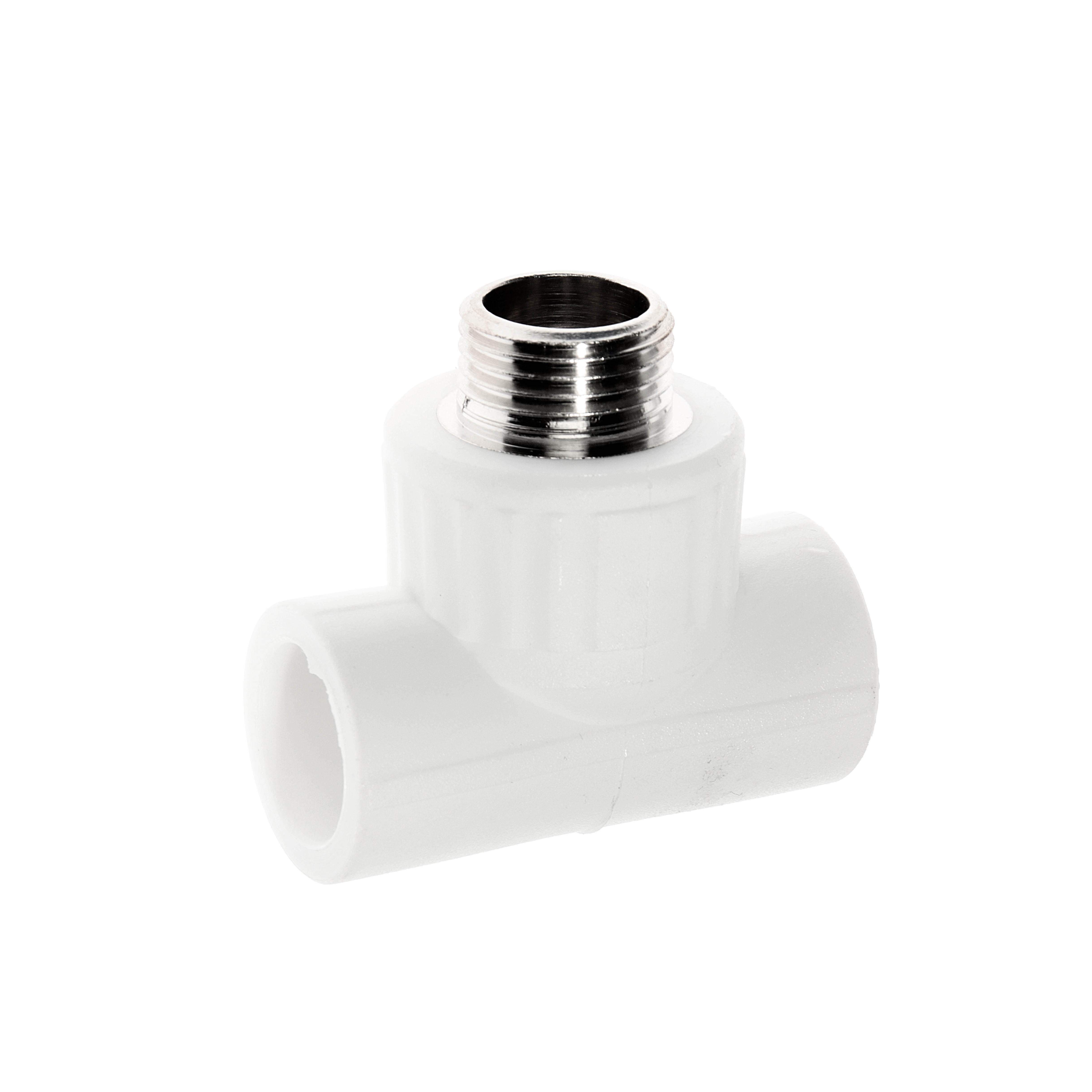 Тройник комбинированный – соединительный элемент комбинированного типа, используемый при создании систем отопления и водоснабжения для развилки труб и организации источников водопотребления. Изготавливается из полипропилена, имеет железную закладку с наружной резьбой для подключения сантехнических приборов и труб. Боковые отверстия предназначены для соединения с трубой посредством сварки.