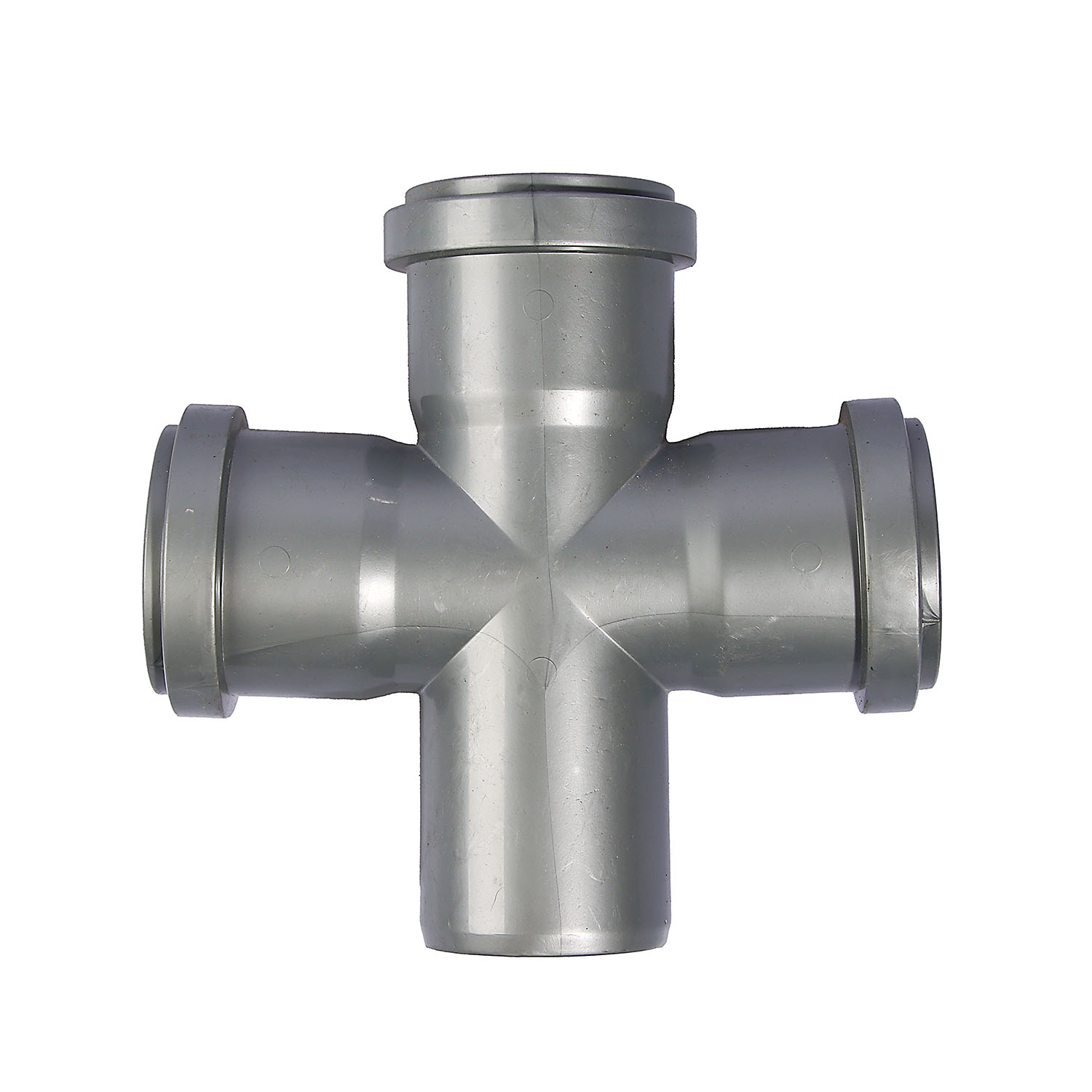 Предназначена для соединения двух ответвлений в основной канализационный стояк. Главная особенность этой модели заключается в том, что раструбы крестовины расположены в одной плоскости.