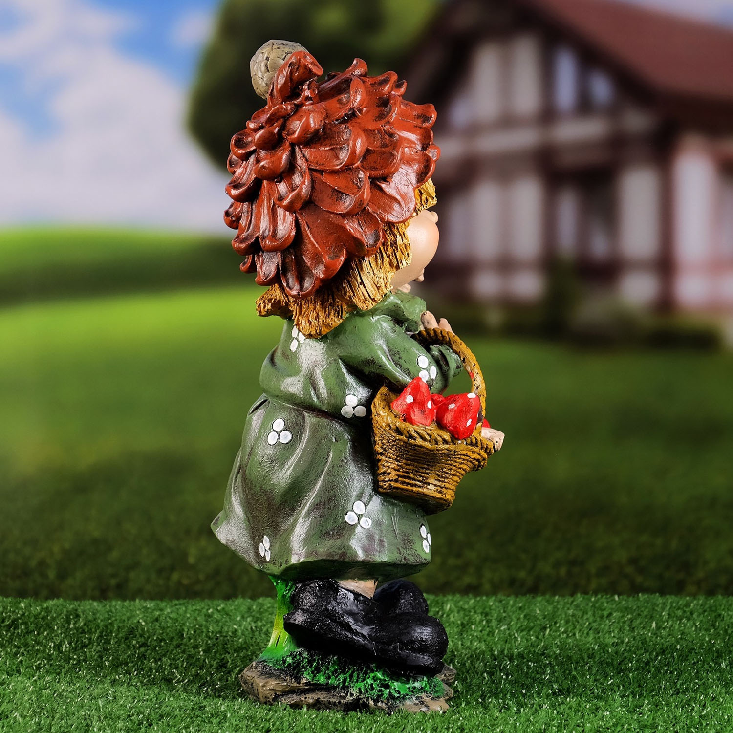 Садовая фигура "Гномик с корзинкой грибов"  17х35см 4855589