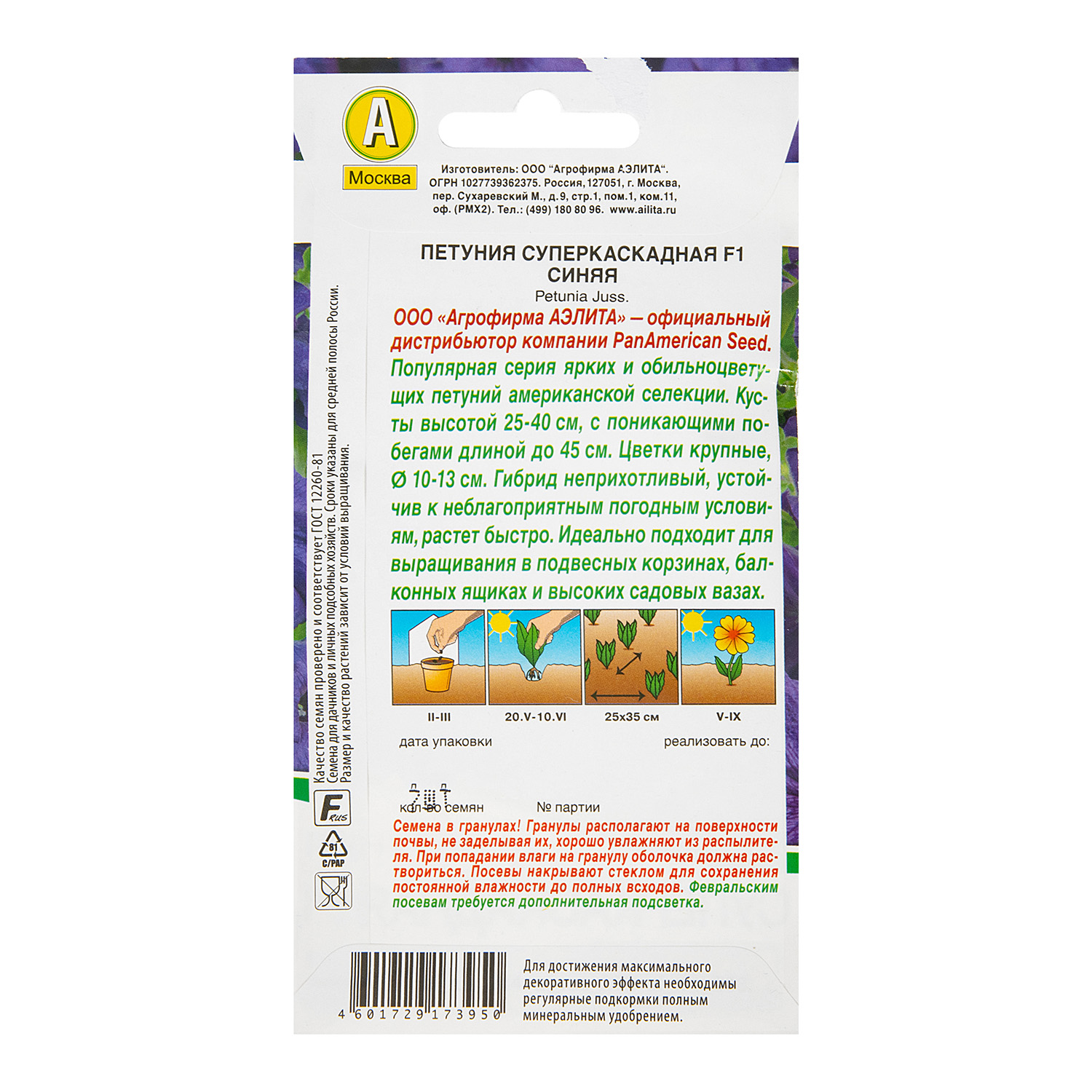 Семена Петуния Суперкаскадная F1 синяя10шт Аэлита цв *10/200