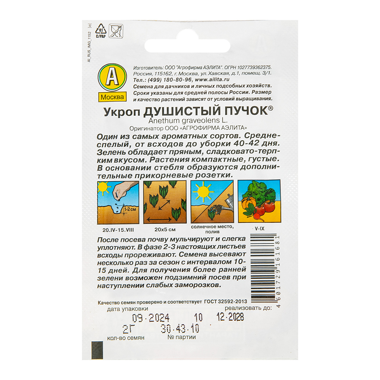 Семена Укроп Душистый пучок 2 гр Аэлита Лидер *10/200