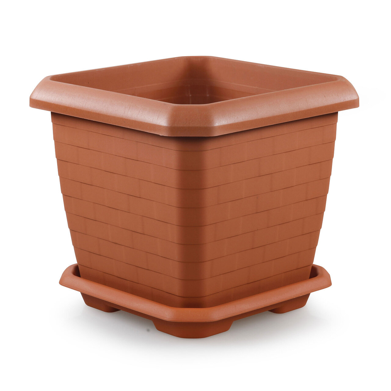 Кашпо пластм. "Измир" 25,5л 370х370мм h335мм с поддоном Квадр. Терракот. HK03 ("Serinova") *1/5