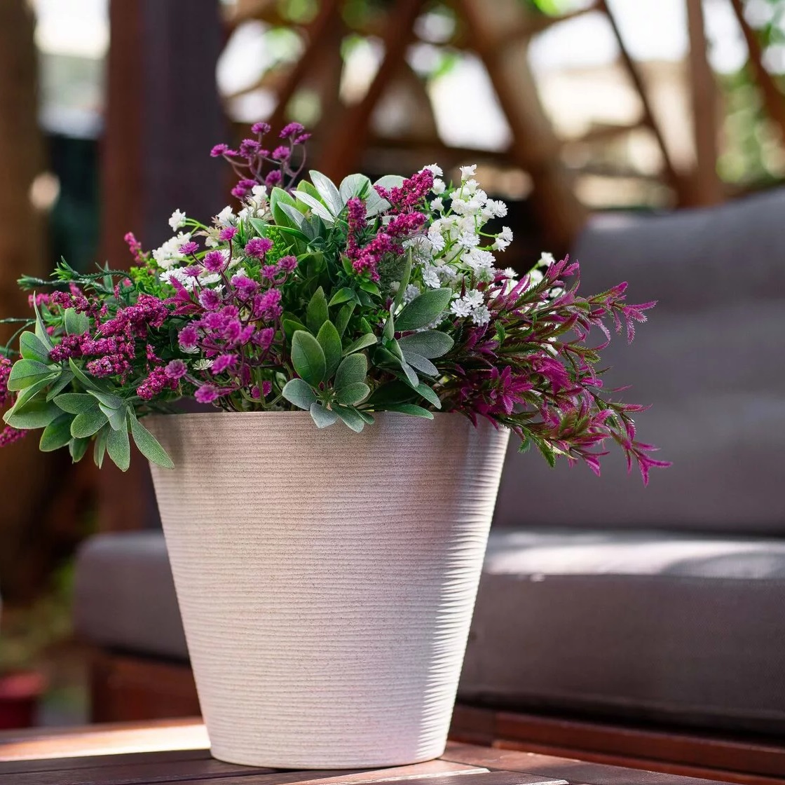 Кашпо пластм. "Конус Эко" 5,2л d верха225мм h205мм,съем дрен.решетка Слон.кость "5plast.ru *1/9
