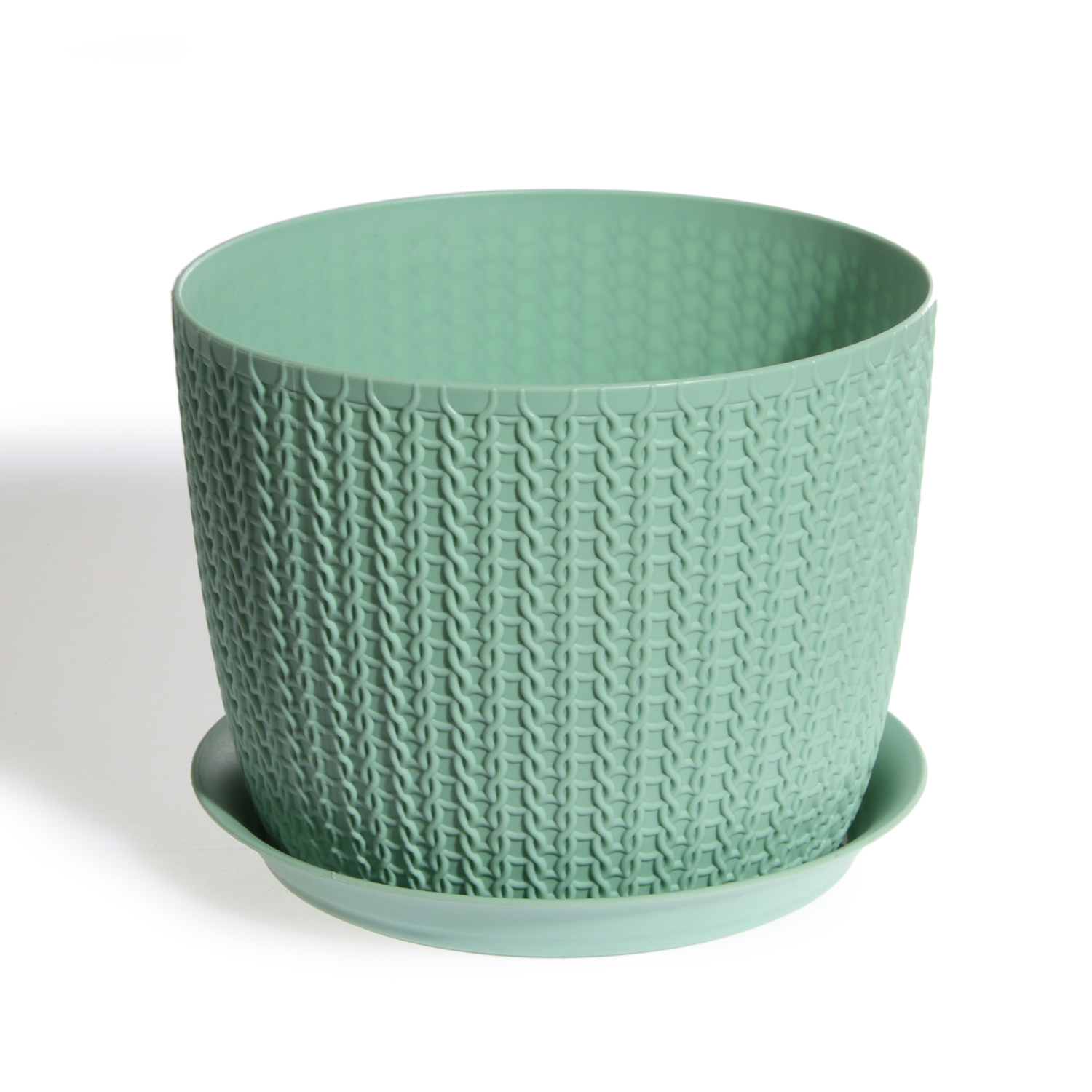 Оригинальная текстура, которая имитирует вязание спицами – изюминка этого изделия. Современное кашпо, украшенное нежной вязкой, подчеркивает красоту цветов и добавляет уюта вашему интерьеру. Кашпо из прочного пластика не боится прямых солнечных лучей и перепадов температур. Легкие и прочные, комплектуются поддонами.