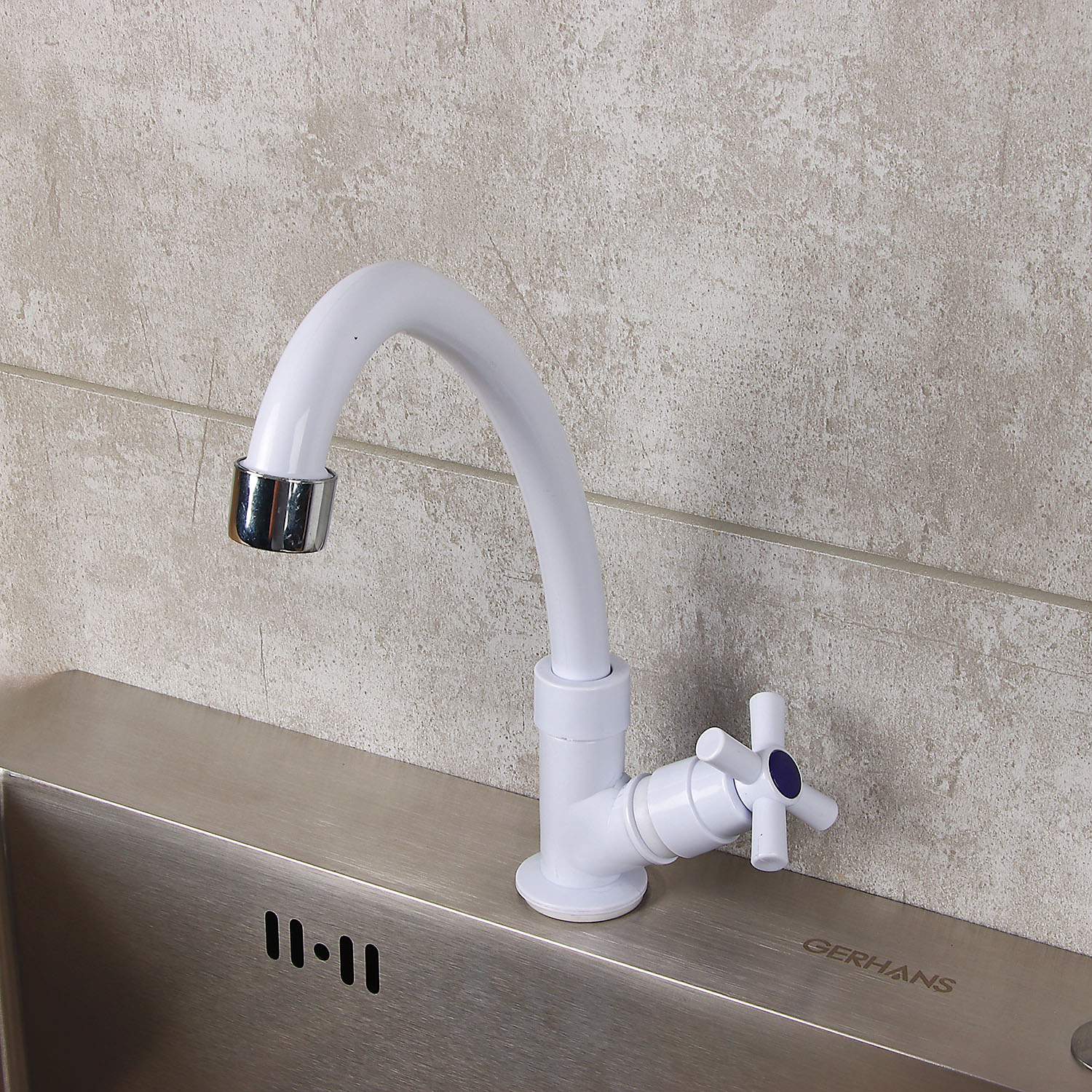 Смеситель для кухни ROEGEN RX523A моно (на одну воду), ABS пластик, высокий излив, белый *1/100