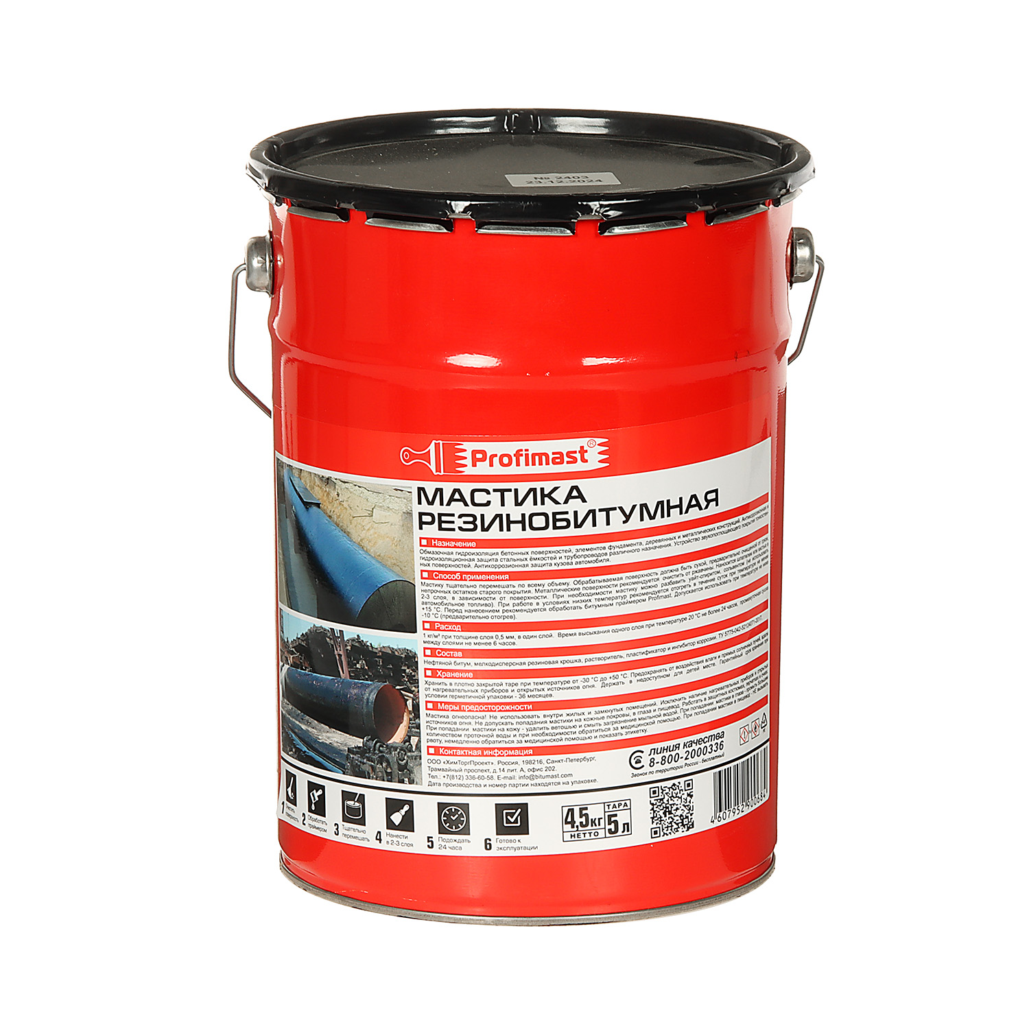 Мастика резинобитумная Profimast 5 л — продукт на основе высококачественного изоляционного битума. Содержит мелкодисперсную резиновую крошку, органический растворитель, пластификатор, наполнитель, ингибитор коррозии и антисептик.
