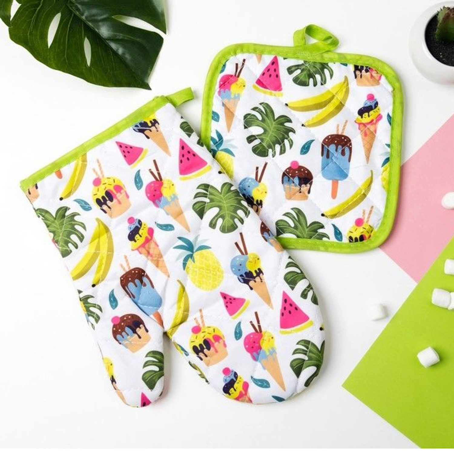 Набор прихваток Summer варежка-прихватка 25х16см, прихватка 16х16см 100% полиэстер Доляна *1