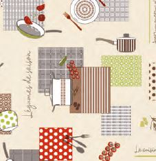 Клеёнка на нетканой основе "Dekorama" "Посуда" сер.-кор.-салатн.-кр. на беж. шир.1,4м 043A *20