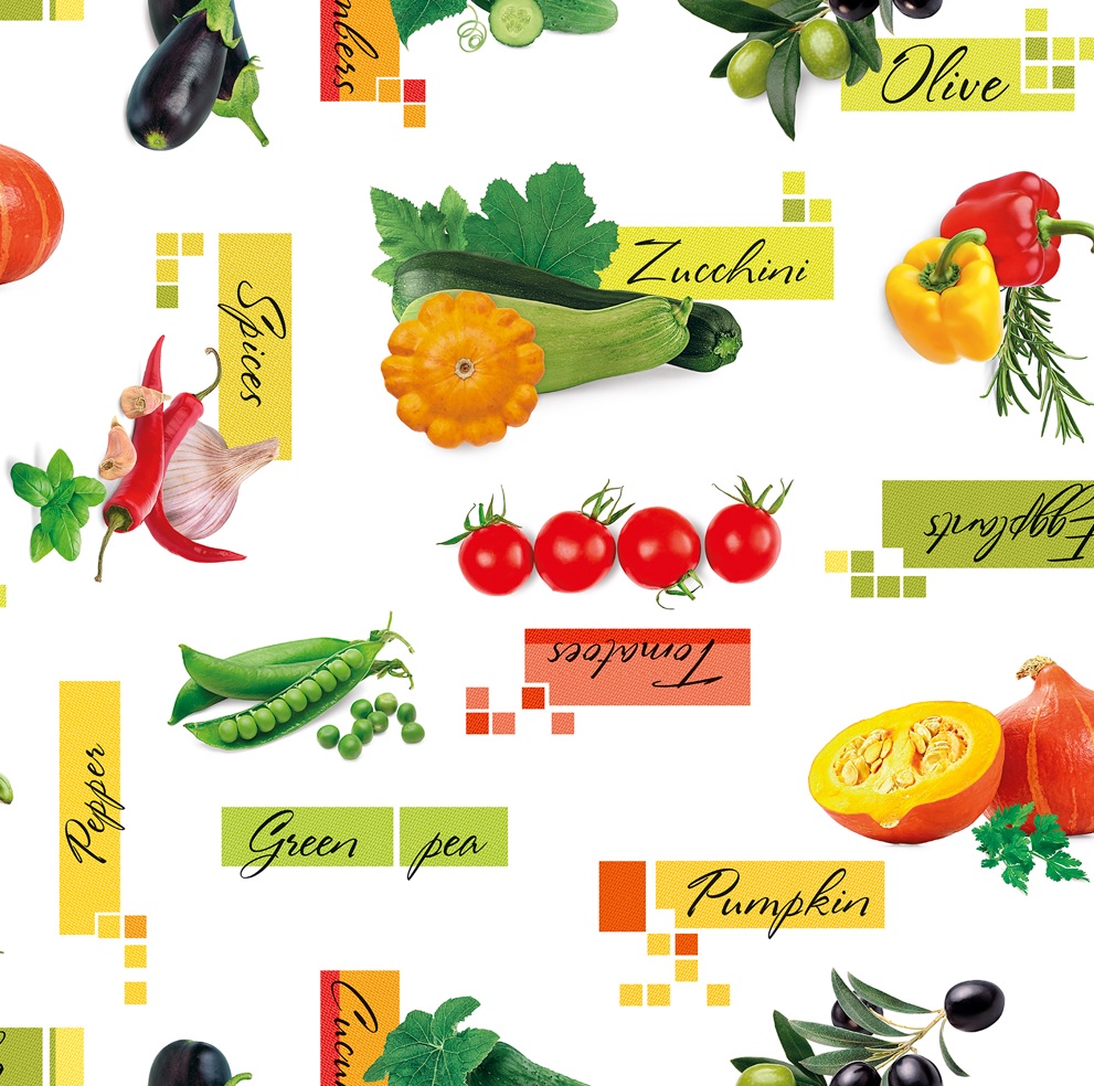 Клеёнка на нетканой основе "Мажор" "Овощи" на Белом шир.1,35м 601/0 "Колорит" *20