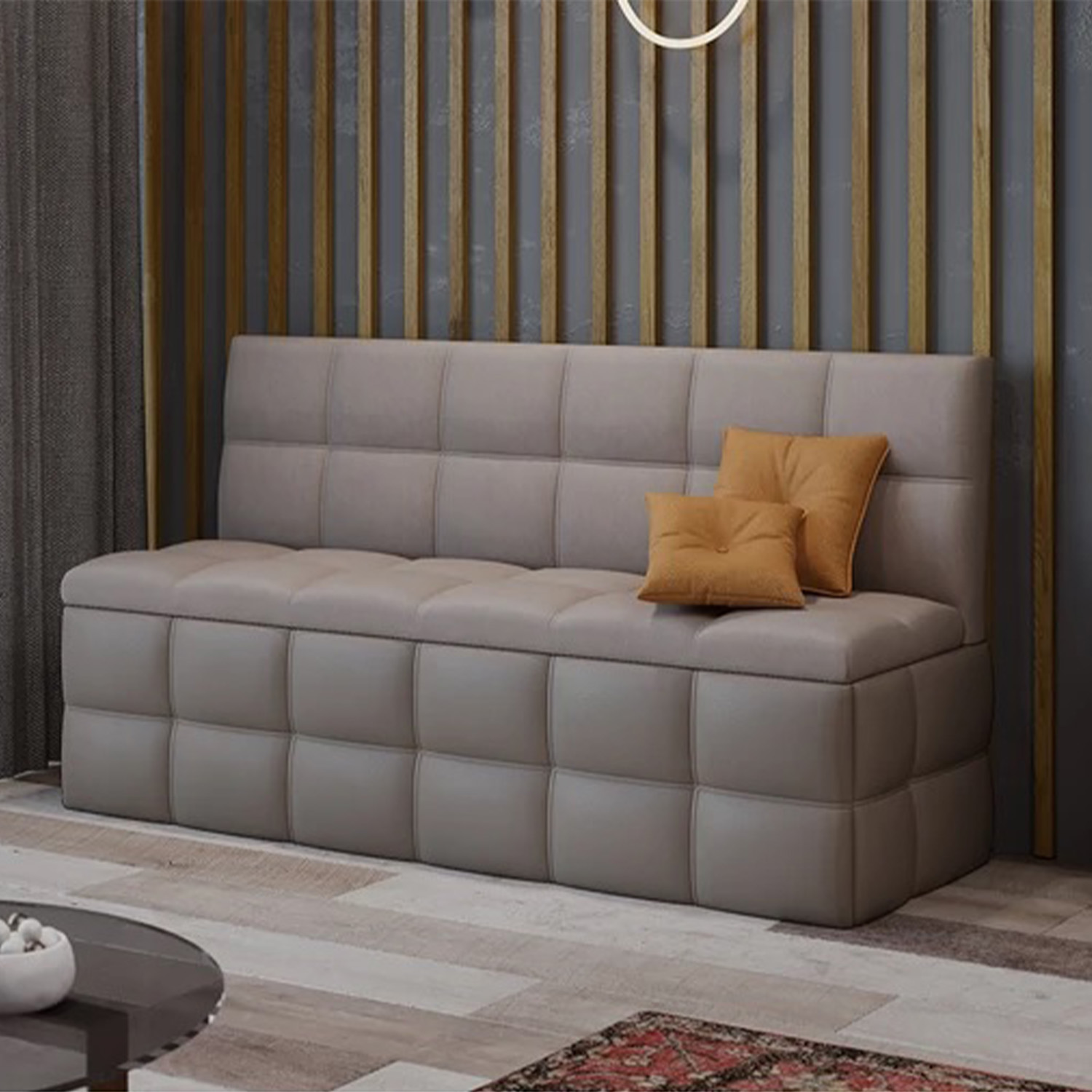 Скамья прямая Домино исп. 2 Кожзам Светло-коричневый/Велюр Мокко светлый*1