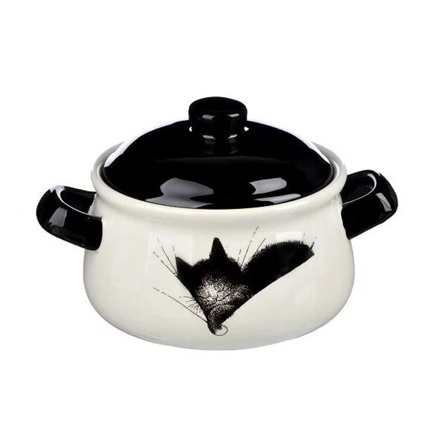 яяяMILLIMI Черный кот Горшочек для запекания, 500 мл, 17x13x10см, керамика