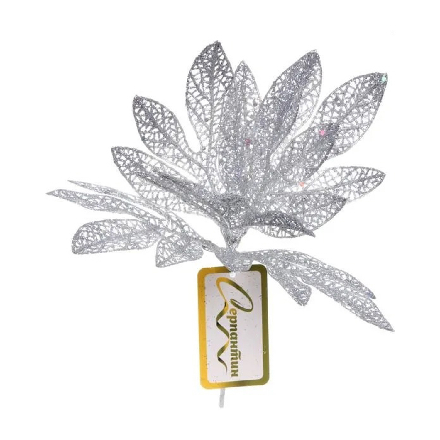 Ветка декоративная "Сказочный листопад" 25 см, Серебро