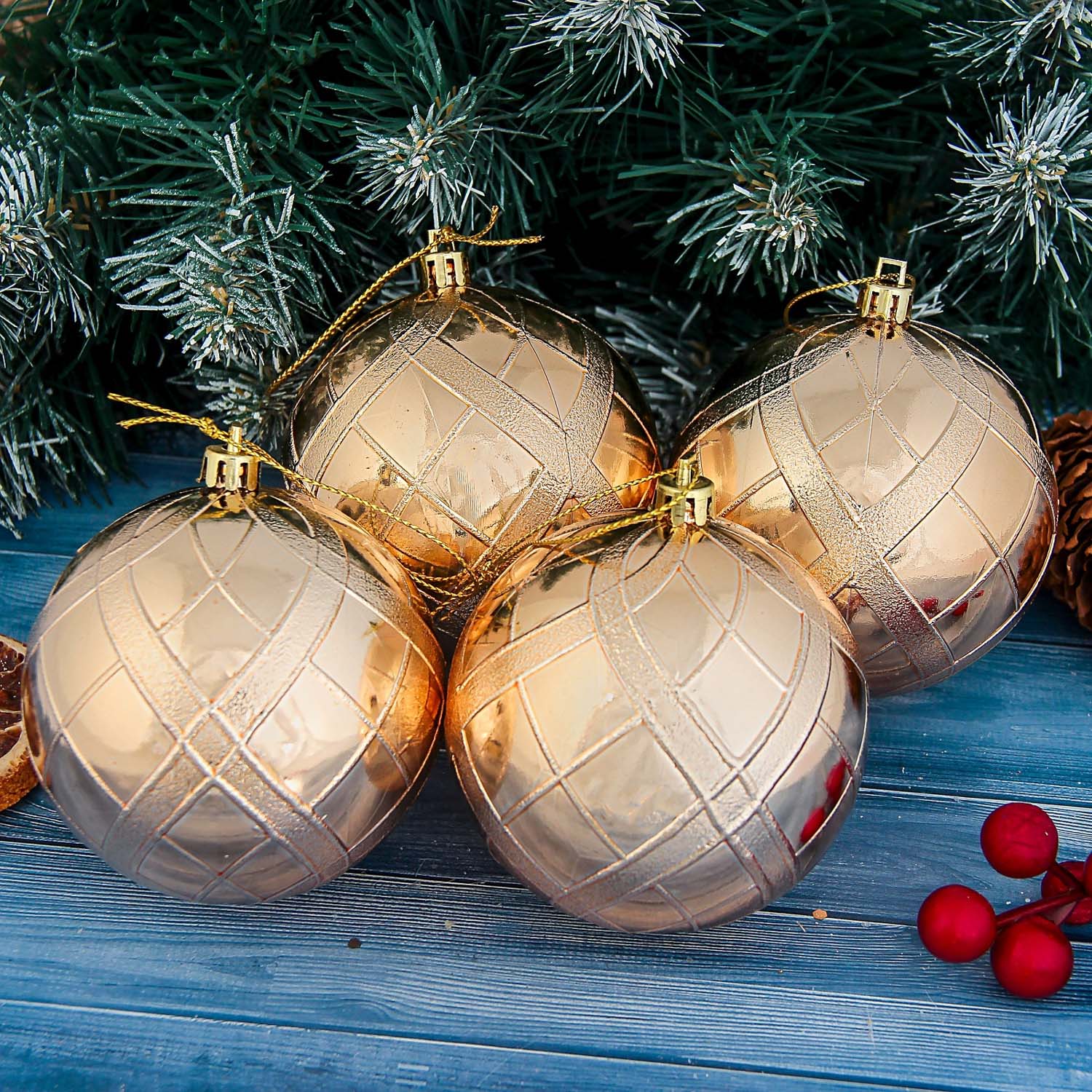 Набор шаров пластик d-8 см, 4 шт "Переплёт" золото 1307154