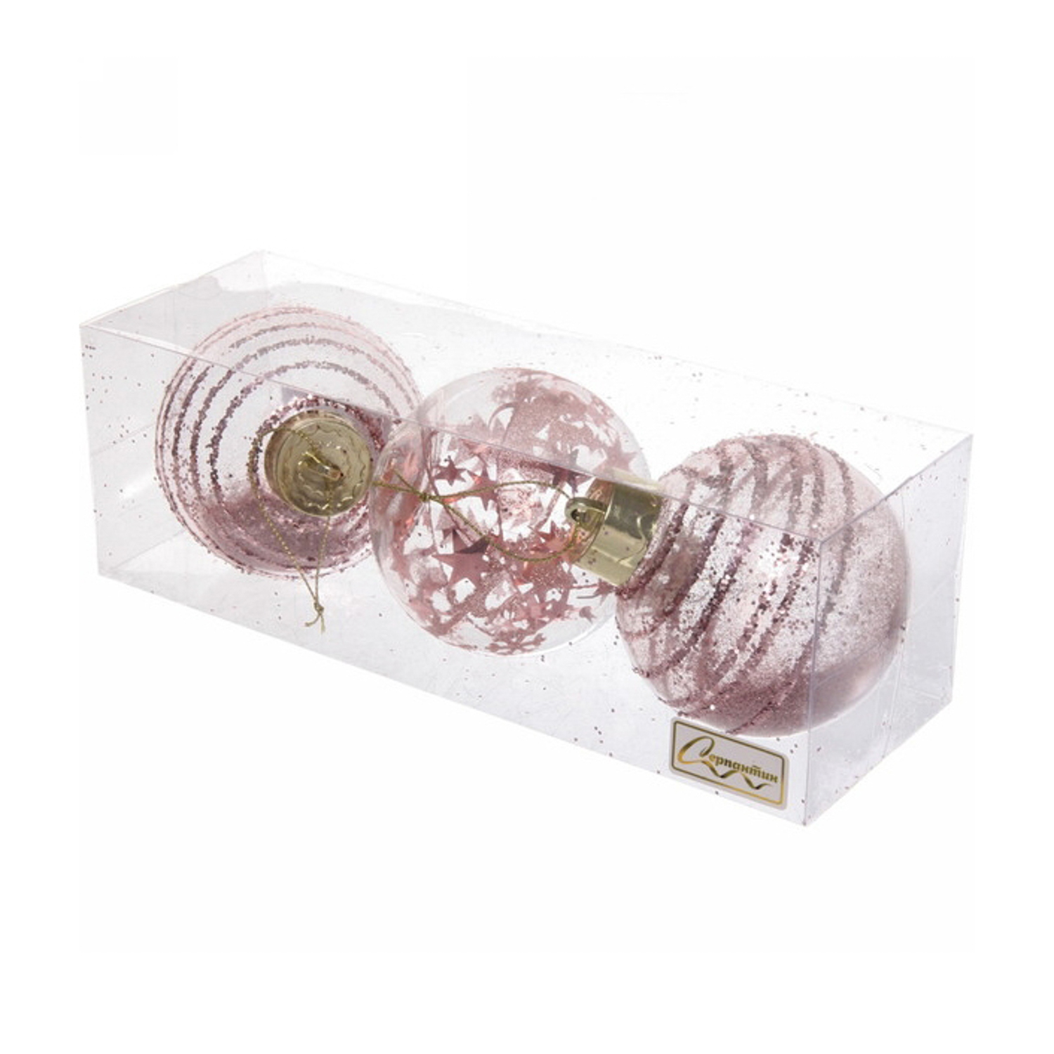 Новогодние шары 8 см (набор 3 шт) "Dream", Розовое золото