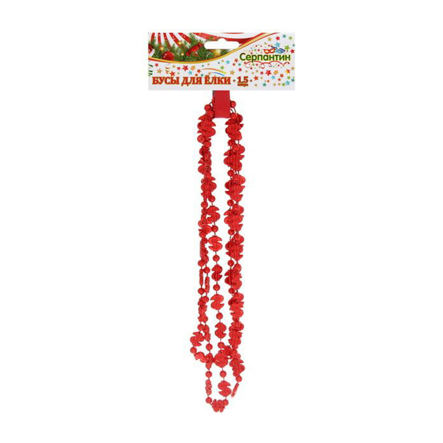 Бусы на ёлку 1,5м "Доллар" красный 1,2см