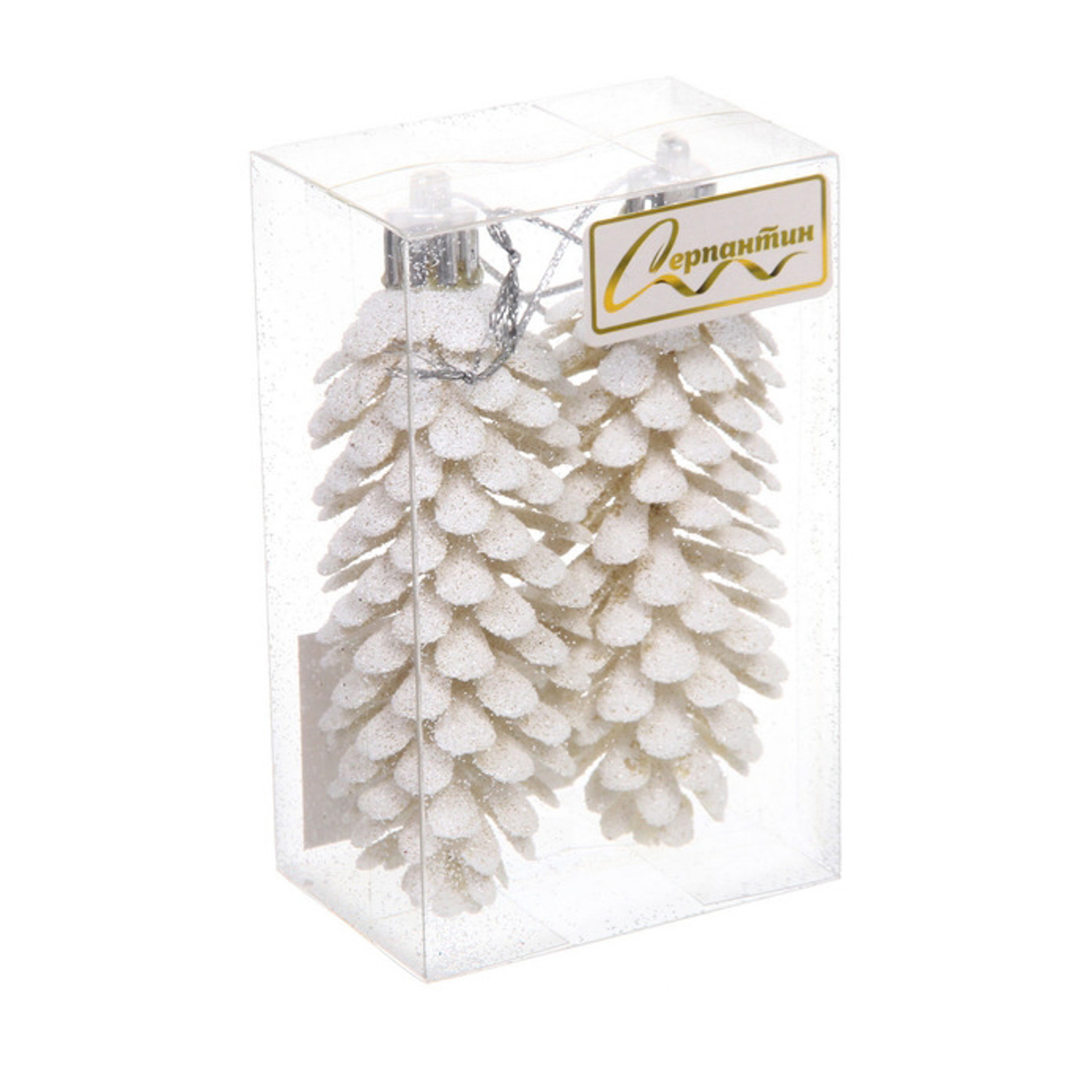 Ёлочные игрушки "Шишки блестящие" 9 см (набор 2 шт), белый